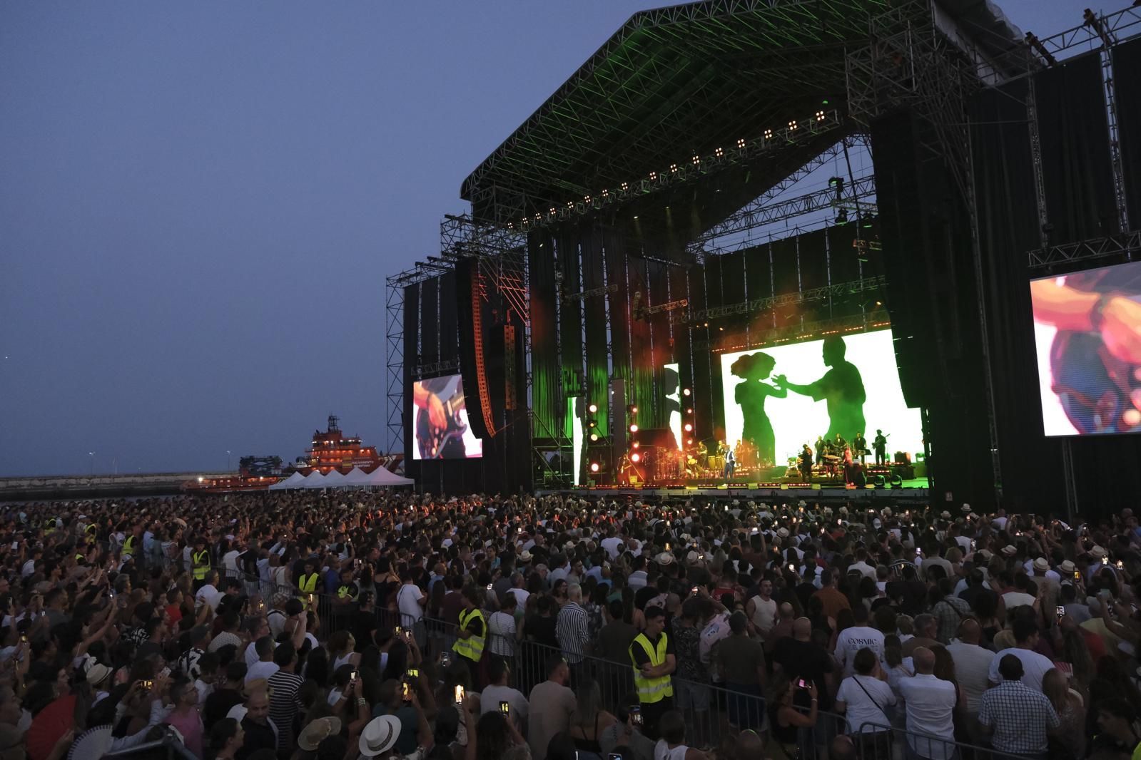 Cuando la noche estaba ya muy cerca, comenzó la magia. Trompetas, percusión y sobre todo, la inimitable voz del maestro iluminaron la ciudad por completo. La multitud, eufórica, inmediatamente arrancó a bailar y a cantar como hacía años que no ocurría y es que el amor cuando es verdad, sale del alma, Rosalía fue el inicio.